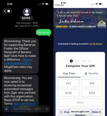 I also couldn’t help but notice the mobile call-to-action that flashed all over the park: “Text BANANAS to 50155 to support Bananas Foster!” I sent a quick text and got a quick response with a link to give to support the organization:
