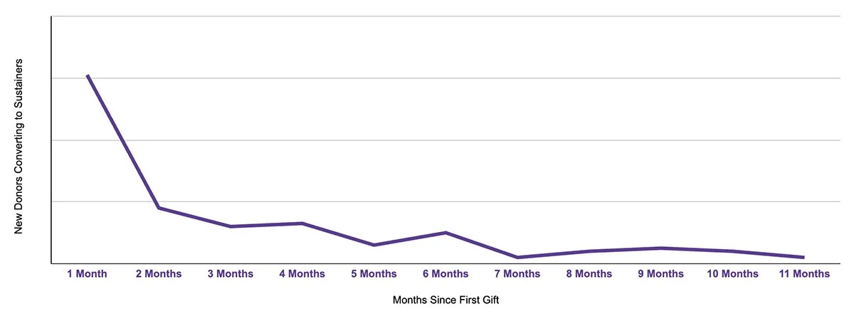 💡 Takeaway: The most important window to invite new donors to become a sustainer is within the first 30 days of their first gift. Focus your welcome series on AFFIRMING them for the impact they have made, and INVITING them into an ongoing impact.